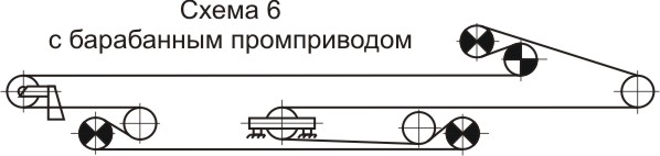 | Натяжное лебедочное устройство. | Обеспечивает необходимый ход натяжной тележки (каретки) при длине конвейера от 100 до 1000 м и более. |